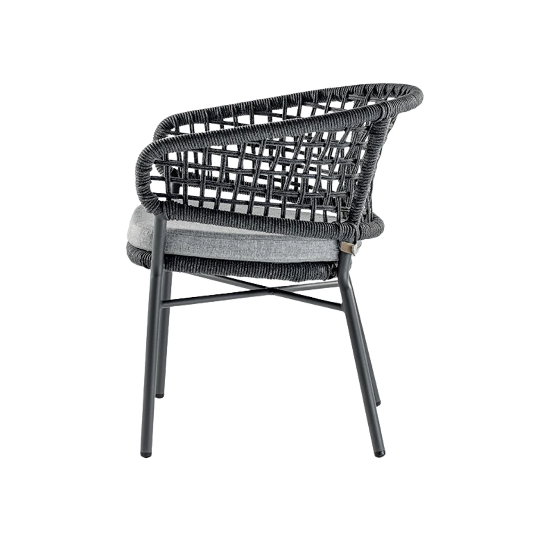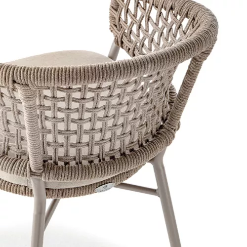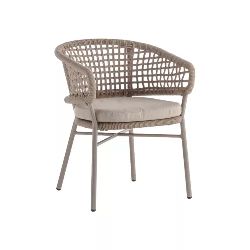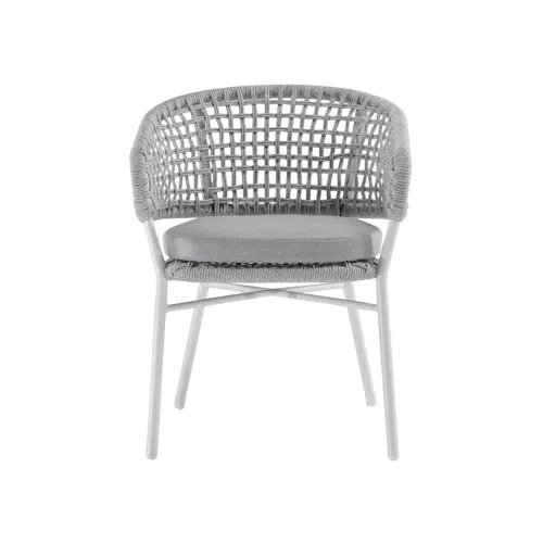 Adon is a stylish outdoor chair with armrests, made from durable Aluminium and wrapped in weather-resistant acrylic rope. The cushioned seat is upholstered with olefin fabric, ideal for intensive use. Stackable and lightweight, Adon fits perfectly on horeca terraces and complements a variety of design styles.