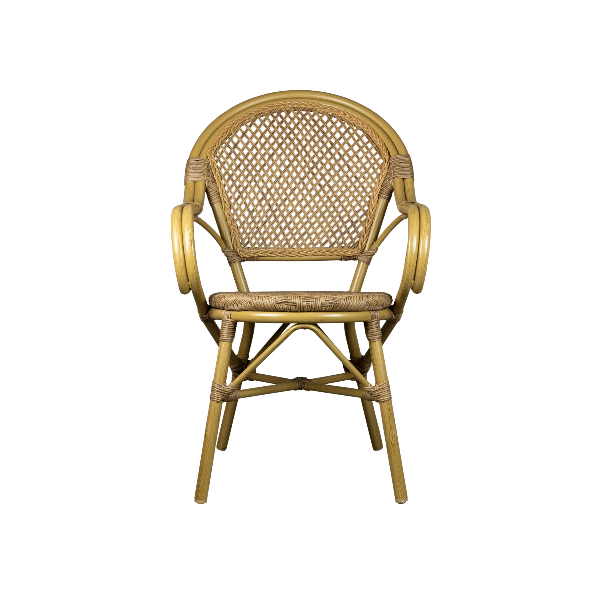 The Alvo terrace chair features UV-resistant wicker in a refined webbing design, ensuring excellent colour retention and a long-lasting appearance, even with intensive outdoor use. Its powder-coated aluminum frame is built to resist scratches and daily wear. Practical in every sense, the Alvo is fully stackable, allowing for quick and space-efficient storage.