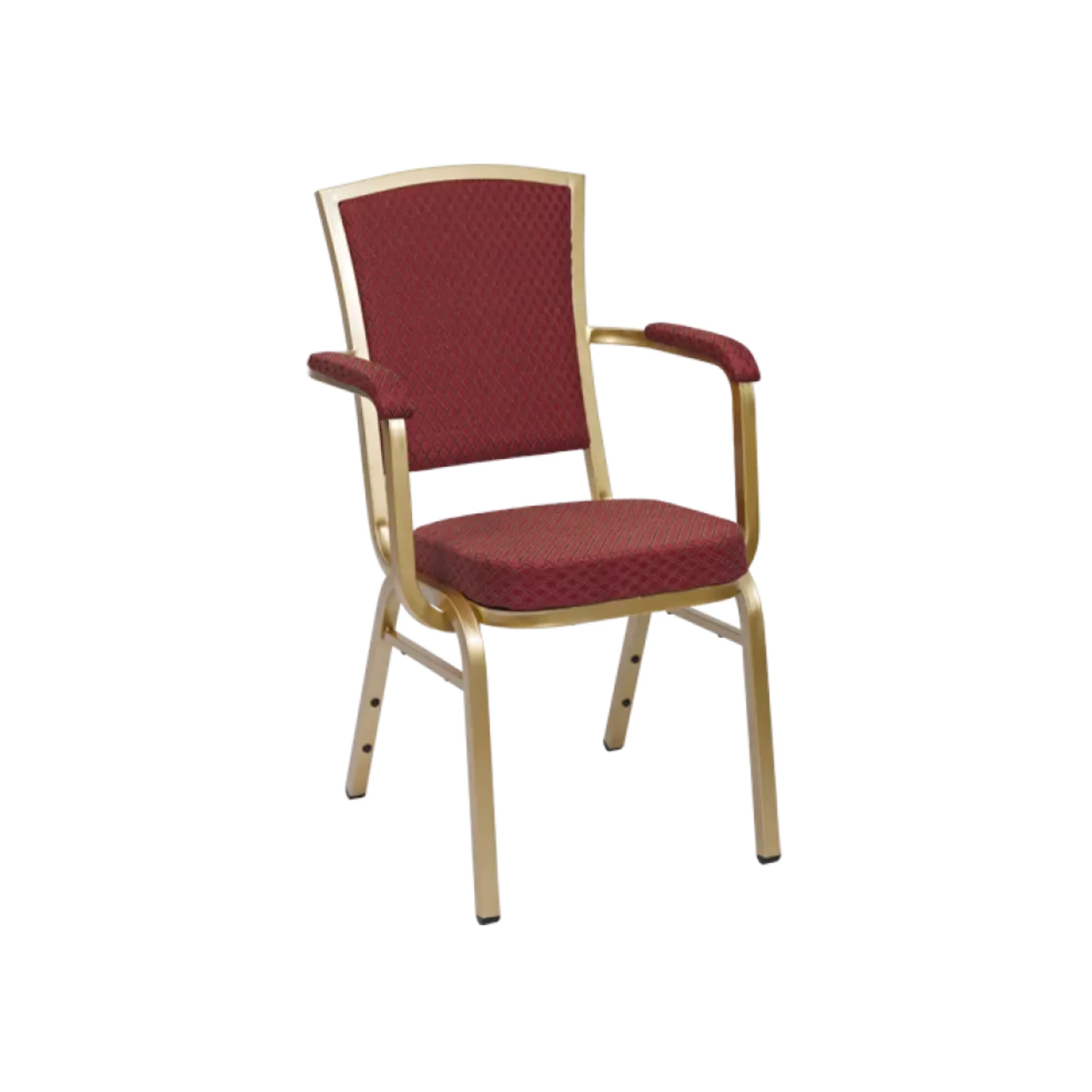 Ambassador Alu A is an upholstered chair with armrests, built on a lightweight yet durable aluminium frame. Designed for horeca venues like banquet halls and conference rooms, it offers various frame and fabric color options. Stackable up to 14 units, it adapts to multiple interior styles and ensures easy storage, comfort, and versatility for high-traffic environments.