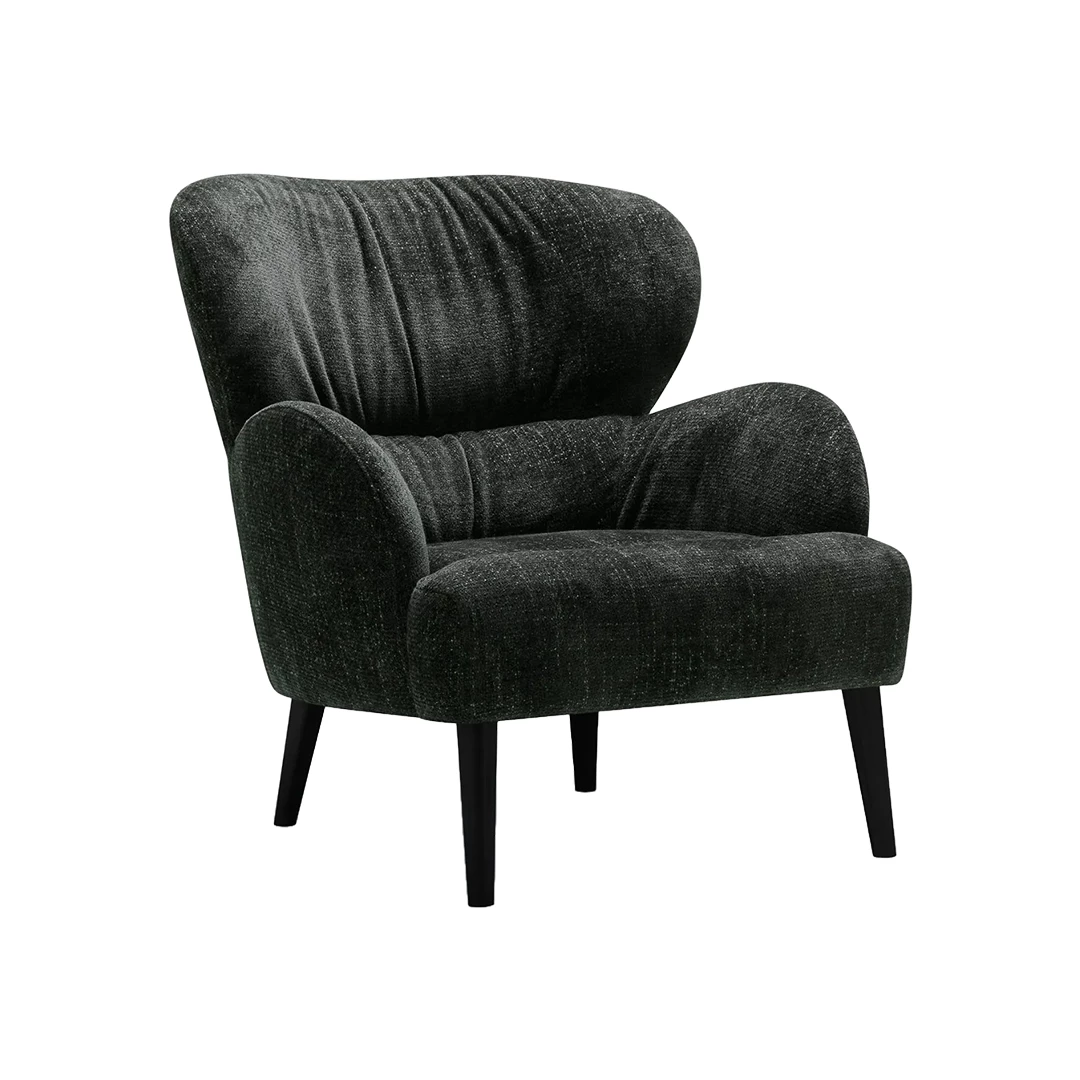 Arden is a striking upholstered armchair featuring high wooden legs, a pleated backrest, and a thickly padded seat for ultimate comfort. Its playful, voluminous round shapes make it a standout piece, ideal for lounges, lobbies, waiting areas, and horeca spaces. Choose from a wide selection of professional fabrics or faux leather to match any interior style.