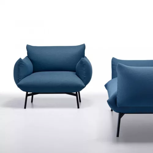 Area Armchair P_BR M TS is a fully upholstered armchair designed for horeca interiors. It features a cushioned seat, backrest and armrests, all supported by a sturdy lacquered steel frame available in multiple colors. Its elegant comfort and professional-grade upholstery make it ideal for lounges, waiting areas, and modern hospitality settings.