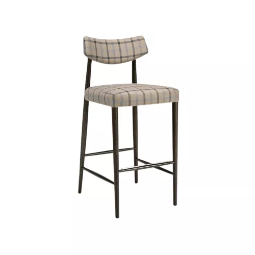 Barstool with a sturdy frame made of beech wood, designed to deliver both elegance and lasting comfort. The upholstered seat features Nosag springs for enhanced support and long-term resilience, while the upholstered backrest ensures an inviting seating experience. Crafted especially for Horeca interiors, it combines refined aesthetics with top-quality materials. Available in a wide range of fabrics and textures that maintain their beauty even under intensive use.