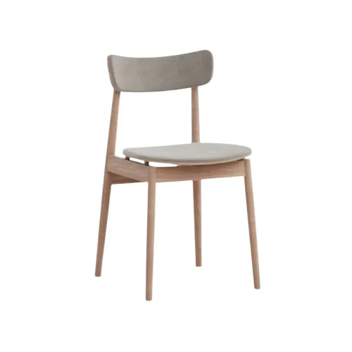 The Bobby S chair stands out with its durable beech wood frame, designed for intensive use in hospitality settings. Available with wooden seat, upholstered seat, or fully upholstered seat and backrest, it comes in a wide variety of wood finishes and upholstery fabrics. Personalization is possible through contrasting finishes between seat and back or with customer-supplied materials. A unique back leg support, ideal for hanging coats or bags, is a signature detail of the collection. Bobby includes armless and armchair models, lounge chairs, and barstools, making it a versatile option for any interior.