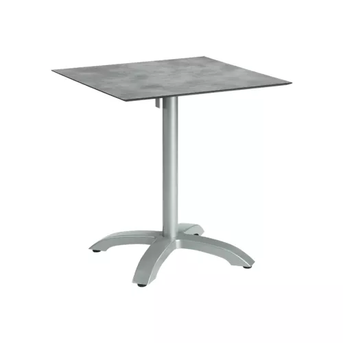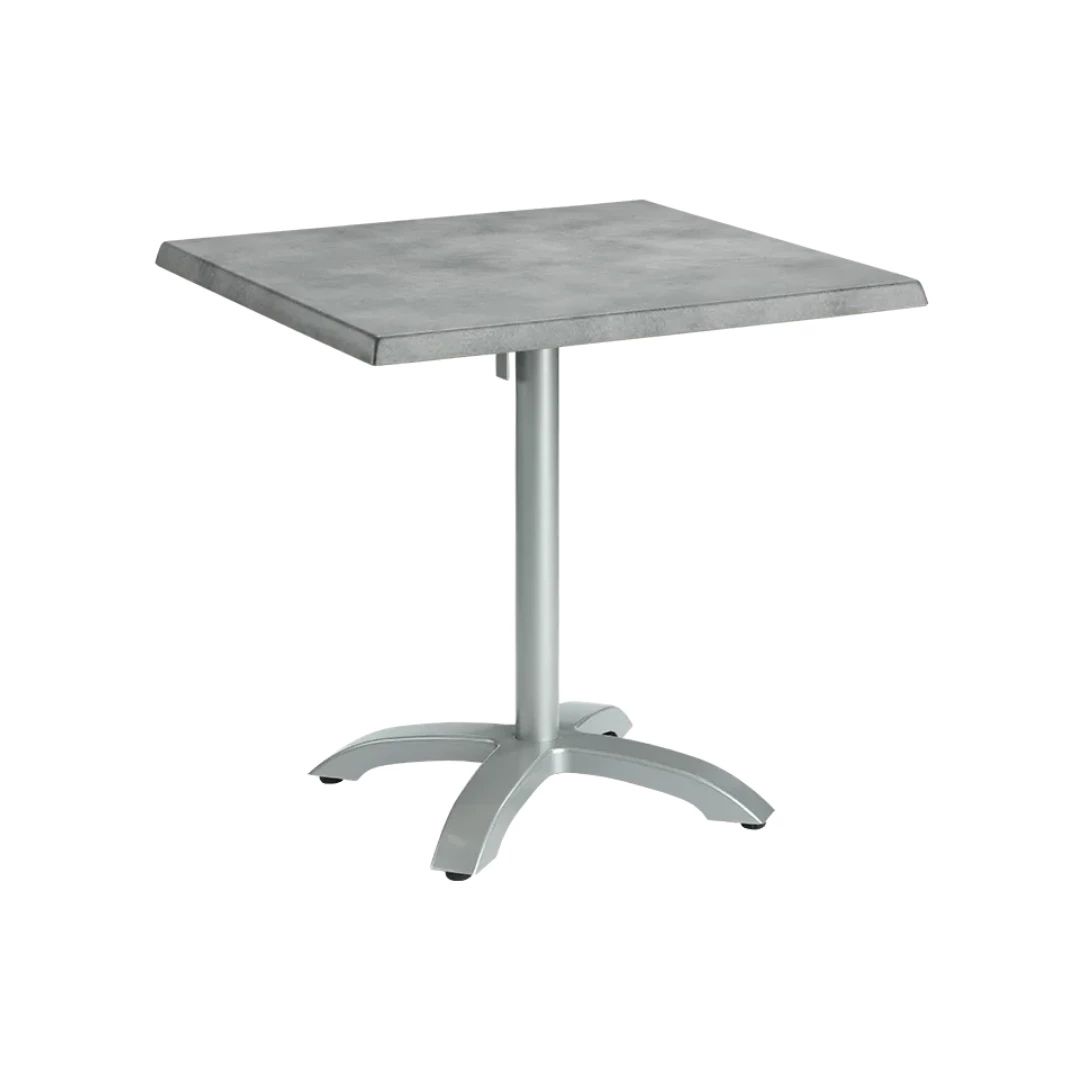 CA403 is a durable outdoor table base made of aluminium, designed specifically for horeca use. With its 72 cm height and folding top mechanism, it combines practicality and resilience. UV and weather resistance ensure long-lasting performance. Suitable for tops up to 80x80 cm or ⌀80 cm. Table top not included, but various options are available.