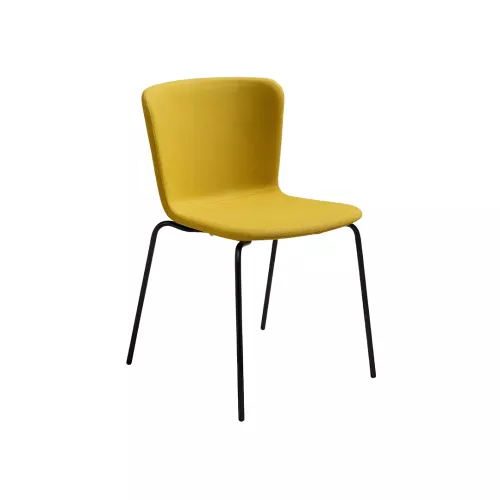 The Calla S M_M TS upholstered chair blends elegance and practicality, featuring a sturdy four-leg metal base available in multiple finishes. Its upholstered seat, offered in a wide selection of professional fabrics or faux leather, ensures comfort and durability—ideal for diverse horeca environments.