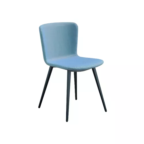 The Calla S M Q TS upholstered chair features a sturdy base with four square tubular steel legs, finished in lacquer or chrome. Its upholstered shell, available in professional fabrics or faux leather, provides comfort and elegance. Designed for versatility, it is ideal for a wide range of horeca settings.