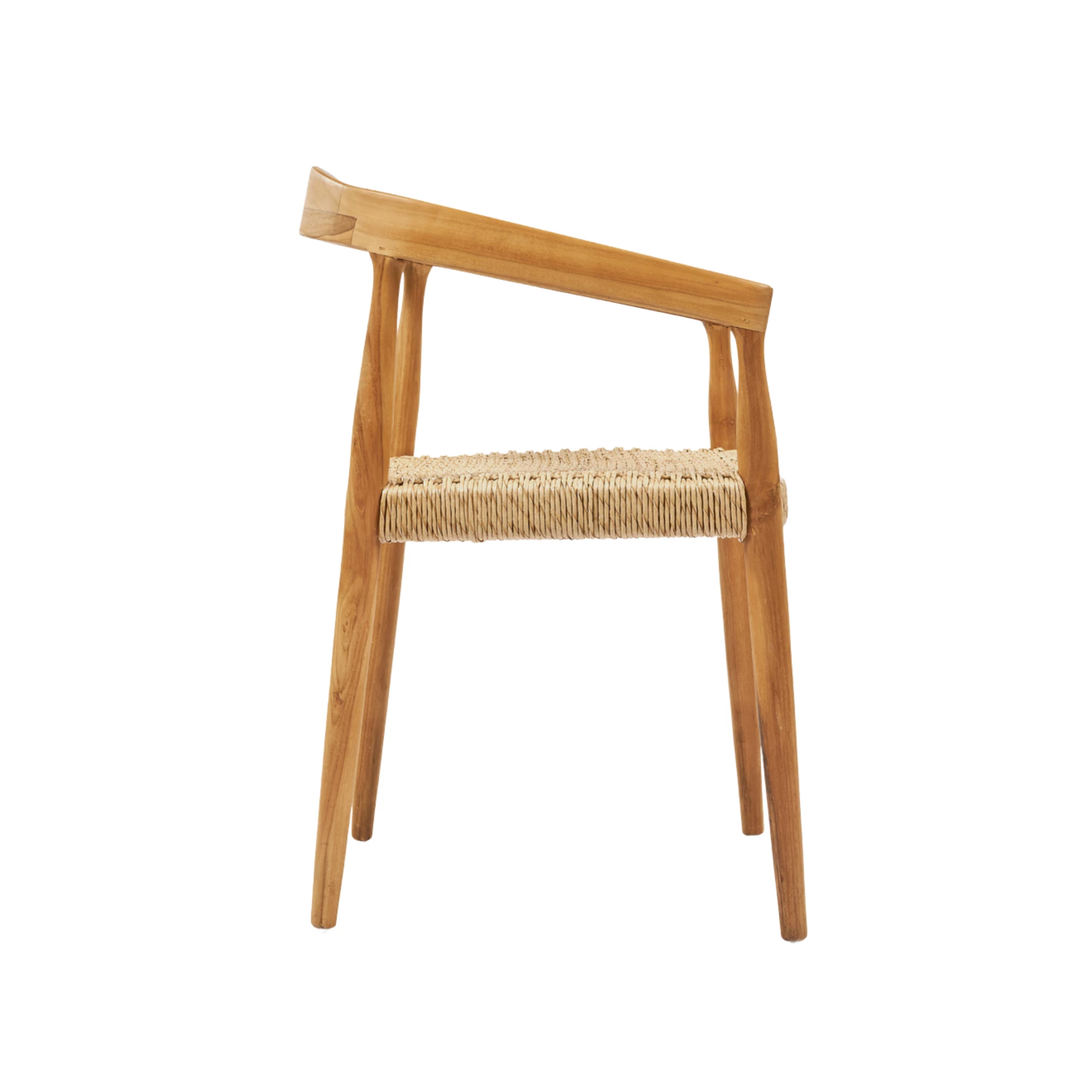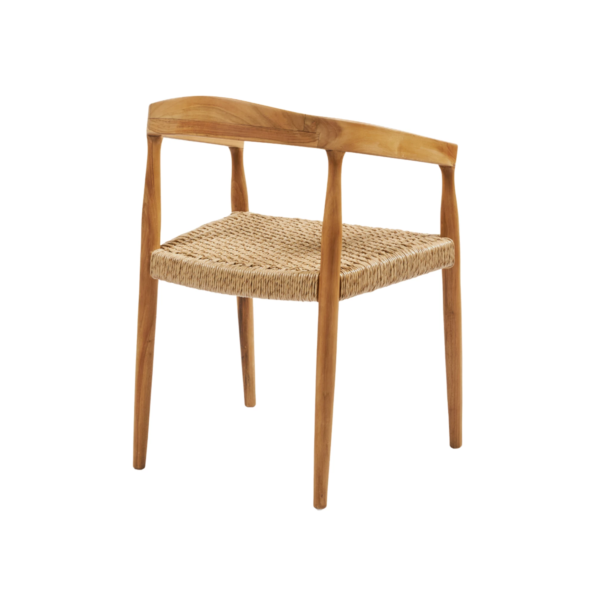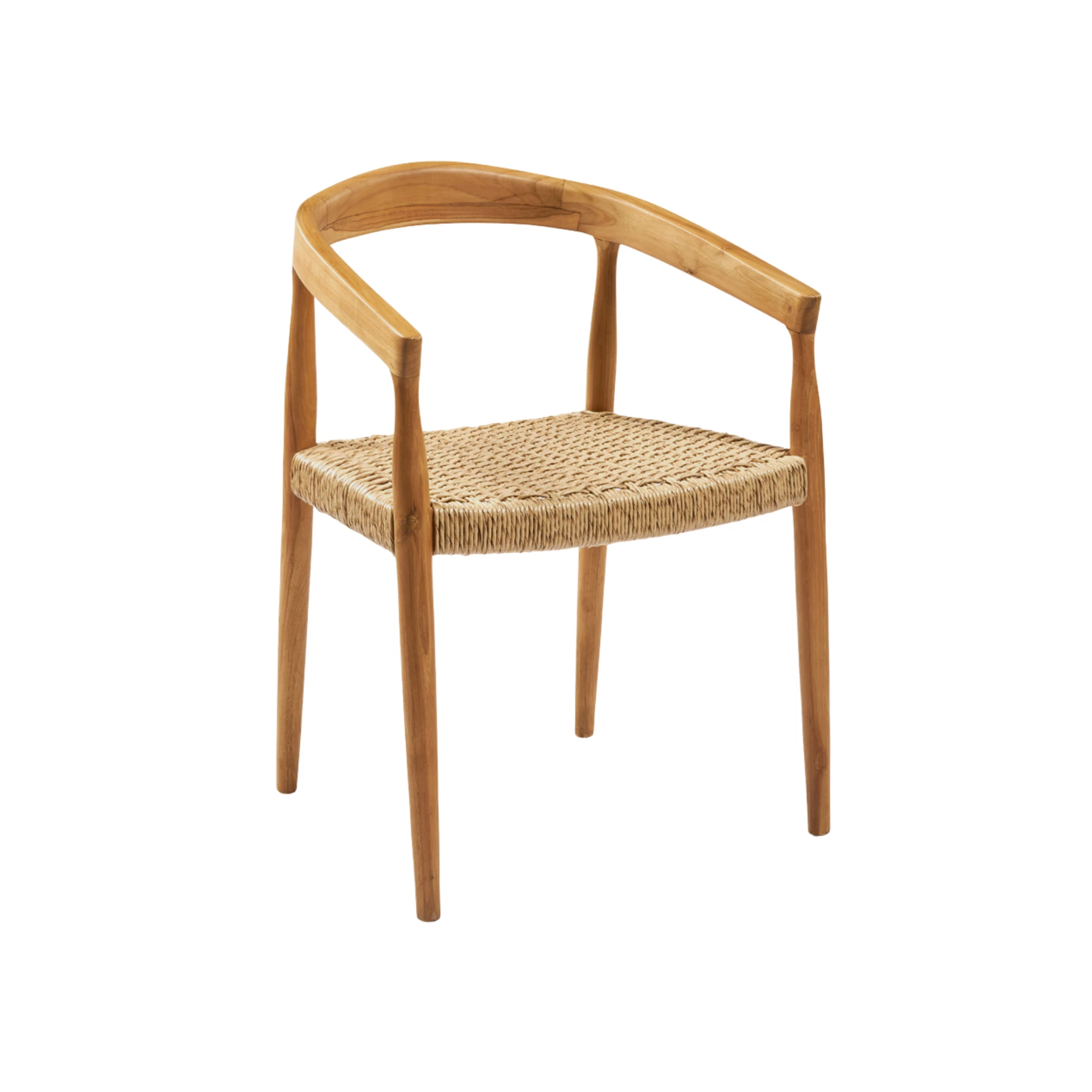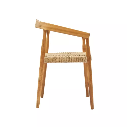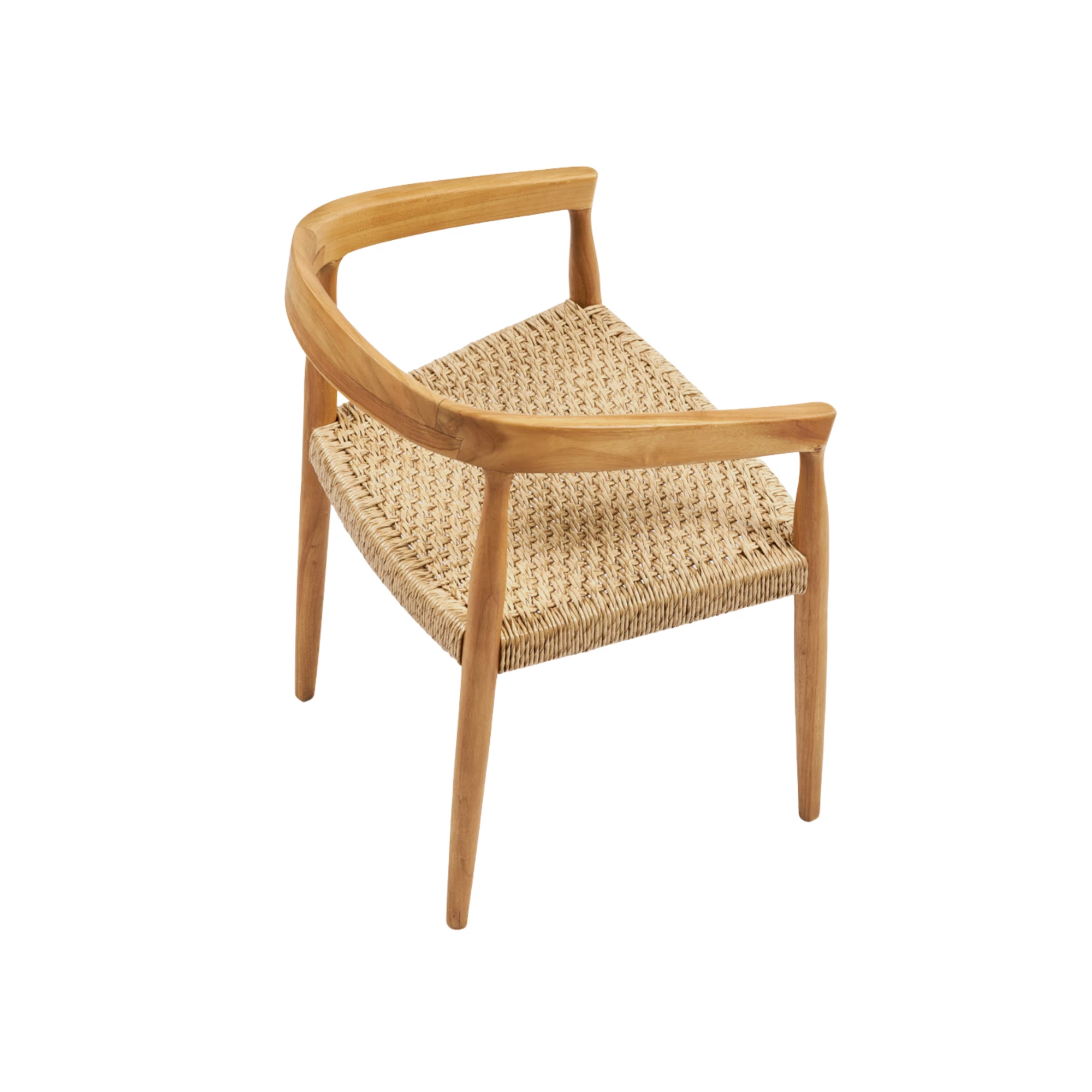 Armchair made of durable teak wood, featuring a seat and back woven with high-quality synthetic rattan. Suitable for outdoor use on terraces, patios, and garden areas, combining natural materials with weather-resistant performance. Dimensions: 55x51x78 cm.
