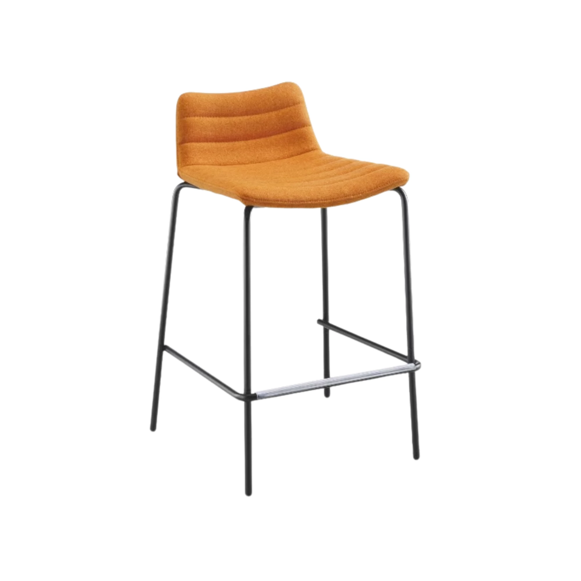 Sophisticated barstool with a sleek four-legged metal frame and an upholstered seat available in leather, faux leather, or fabric. Designed to combine comfort and style, it fits perfectly in contemporary bar areas, restaurants, and cafés. Available in two heights – 65 cm and 75 cm – it offers versatile solutions for different counter setups while maintaining a refined, minimalist aesthetic.