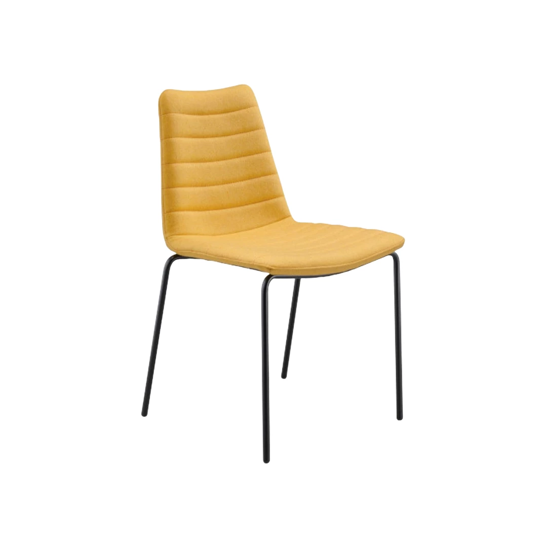 The Cover S M_M TS upholstered chair merges refinement and elegance with functional design. Its four-leg metal base, available in lacquered or chrome finish, supports a comfortable upholstered shell. Fully stackable up to 4 pieces, it offers versatility and is available in a wide range of professional fabrics or faux leather.