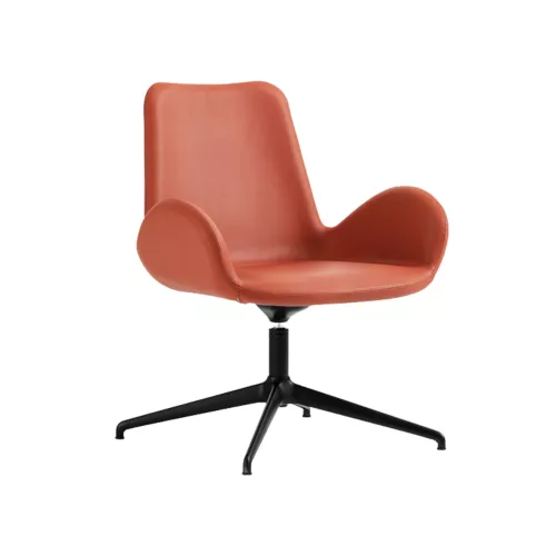 Dalia AP GX TS is a lounge armchair with a trestle-style metal swivel base, ideal for stylish horeca interiors. Its upholstered seat is available in a wide selection of professional fabrics or faux leather. The metal frame comes in multiple color options, making it suitable for lobbies, lounges, and modern hospitality settings.