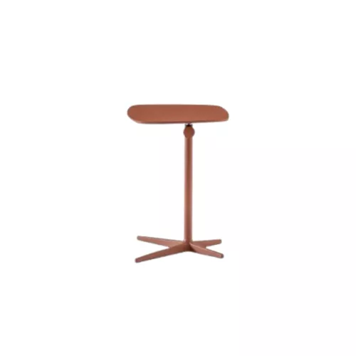 Diego is a versatile side or coffee table for interiors, featuring a sliding stem and sturdy aluminium base with four spokes. Its steel column ensures stability, while a knob allows easy height adjustment. The soft trapezoidal HPL top is available in coordinated or contrasting finishes, combining style and functionality.