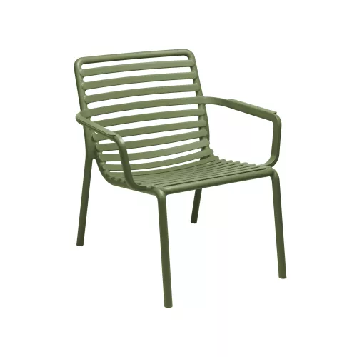 Doga Relax is a stylish and durable monobloc armchair, designed specifically for outdoor use. Made from uniformly colored fiberglass polypropylene resin with UV additives, it resists fading and weather damage, making it ideal for terraces, patios, gardens, or any outdoor setting. The chair is available in a wide range of contemporary colors: white, anthracite, cappuccino, mint, agave, pear, marsala, and tobacco — offering aesthetic versatility for any design scheme. It features a matte finish, non-slip feet for added stability, and a stackable design that makes storage simple and efficient. A matching cushion is available upon request, adding an extra layer of comfort. Doga Relax is made from recyclable resin, reflecting a commitment to sustainability without compromising on style or function.