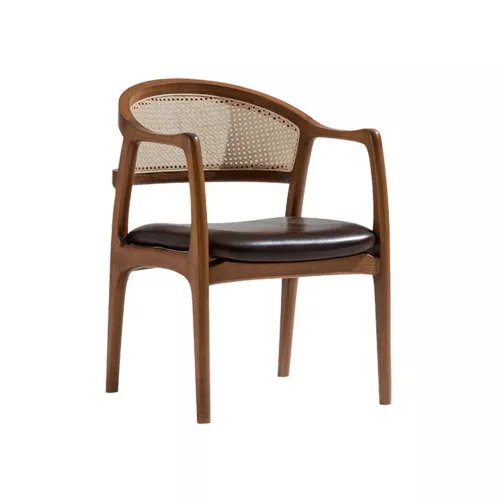 The Dresden chair combines elegance and comfort with a timeless design. Its sturdy beech wood frame, available in multiple colors, features rounded lines for a seamless look. A wickerwork backrest and upholstered seat provide both style and comfort. Upholstery options in professional fabrics or faux leather make Dresden perfect for restaurants, hotels, and diverse horeca interiors.