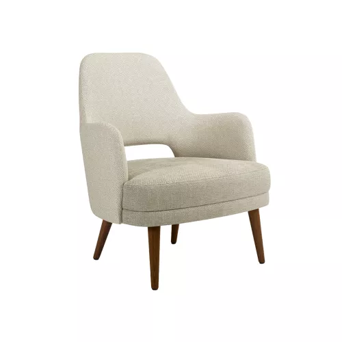 Elay Lounge 1 is a refined armchair designed for horeca interiors, featuring a distinctive cutout backrest. Built on a durable beech wood frame available in multiple stain colors, it offers a fully upholstered seat and backrest. Available in contract-grade fabrics or faux leather, its simple yet stylish design fits effortlessly into lounges, hotel lobbies, and waiting areas.