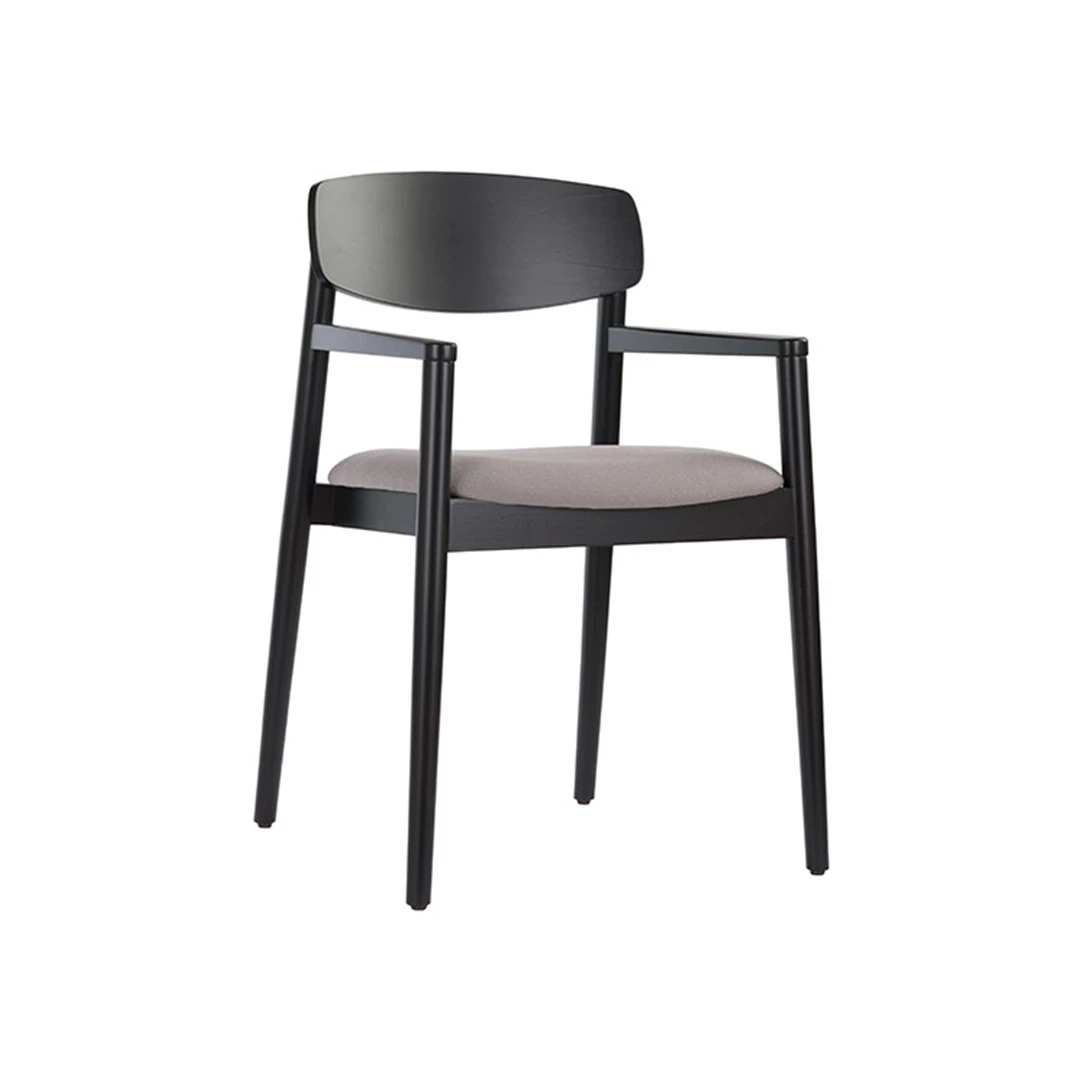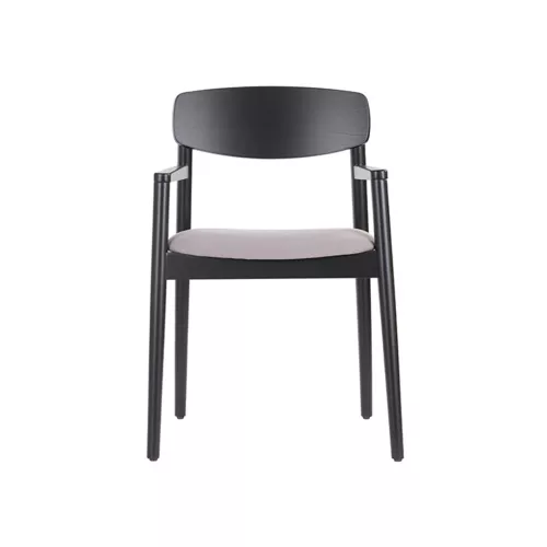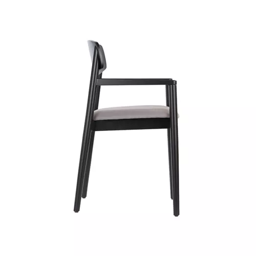 The Elly A is a beautifully crafted wood armchair made from solid beech wood and beech plywood, designed to offer both durability and a lightweight feel. Its upholstered seat ensures comfort while the elegant veneer back adds a touch of sophistication to any interior. Perfect for restaurants, cafes, and bistros, the Elly A combines timeless style with practical functionality, making it an ideal choice for both casual and professional settings. Whether used individually or as part of a seating arrangement, this armchair delivers a comfortable, stylish, and long-lasting seating experience.