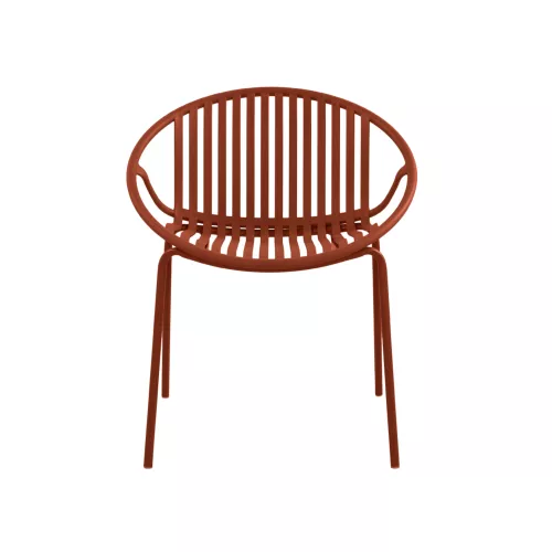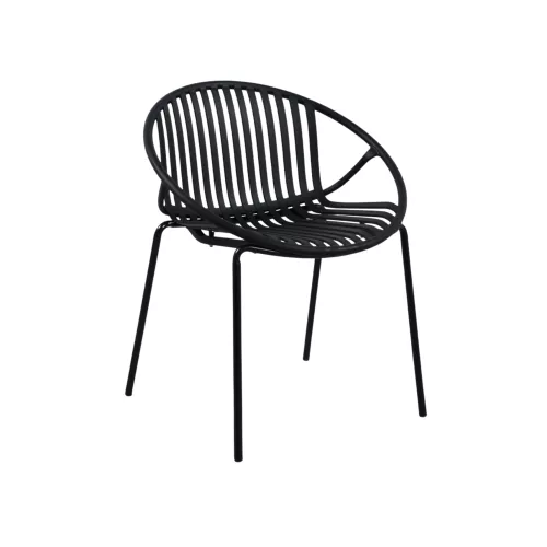 Chair made of metal and polypropylene, designed for outdoor hospitality spaces. The combination of sturdy metal structure and durable polypropylene seat ensures resistance to outdoor conditions and daily use in busy environments. Its compact proportions make it suitable for terraces, patios, cafés, and restaurant outdoor areas. The chair is available in two color options, allowing easy integration into different terrace concepts. Dimensions: 65 × 58 × 78 cm. Available in 2 colors.