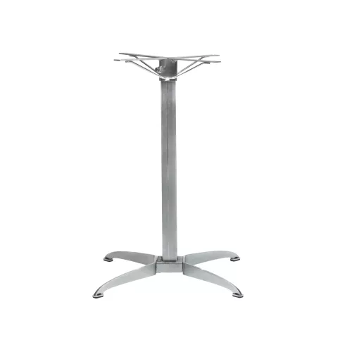 Flexi Feet S is a smart table base with a patented system that adapts to uneven surfaces, preventing wobbly tables. The demountable cross allows for easy tabletop removal. Available in galvanized or powder-coated black finishes. Compatible with tops up to 80x80 cm or 100 cm Ø. Suitable for indoor and outdoor use, this disassembled base offers flexibility and a stable dining experience.