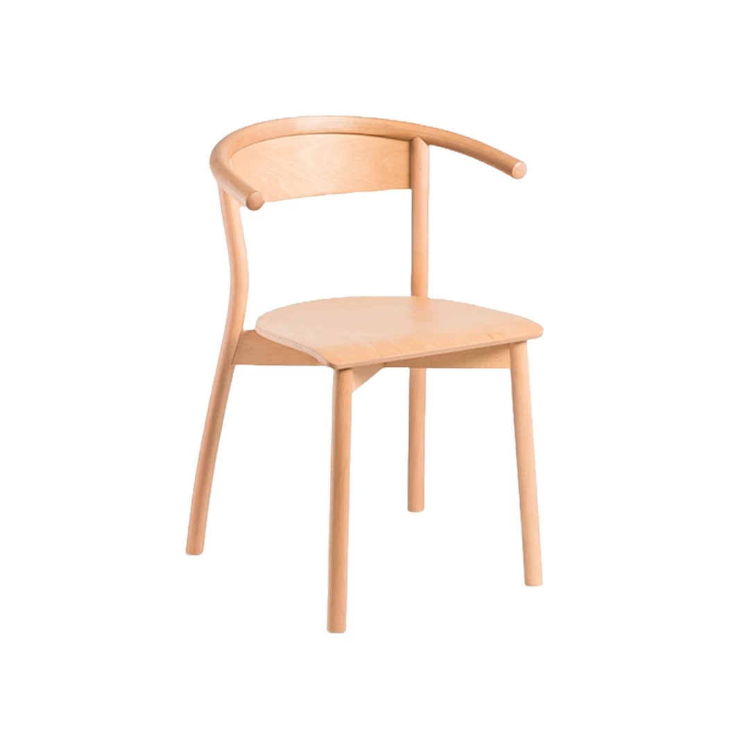 The Gala A chair offers a modern reinterpretation of classic bentwood craftsmanship. Its gracefully curved backrest forms a soft arc that gently embraces the sitter, while the beech wood frame and integrated armrests ensure comfort and durability. Stackable and available in various colors, Gala A is ideal for stylish and functional HoReCa interiors.