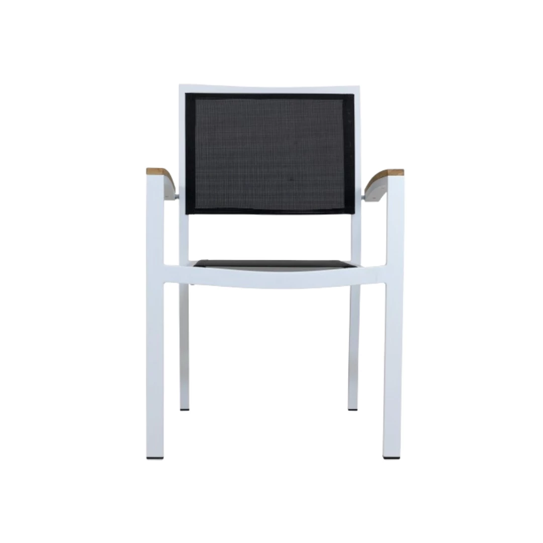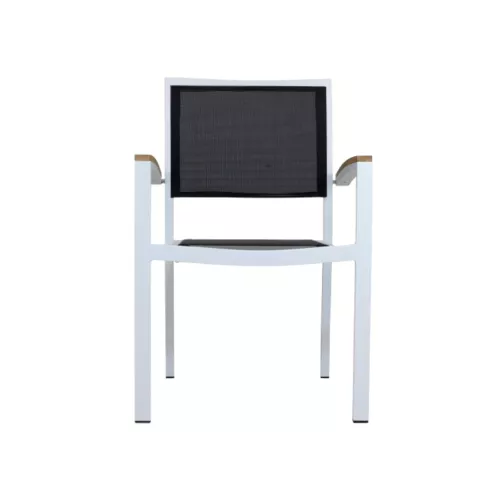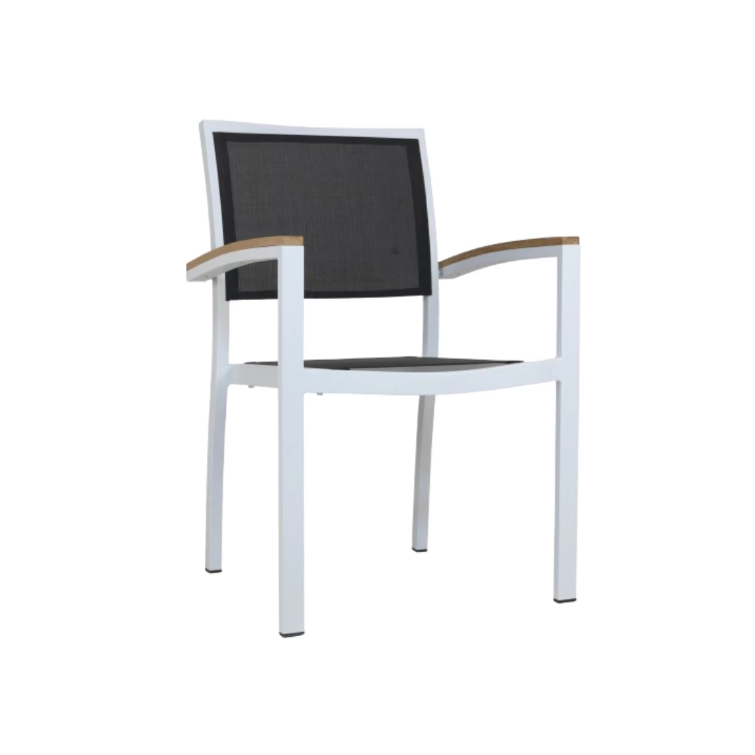 The White/Black Textilene chair is the perfect blend of durability and style, designed specifically for terrace restaurants, cafes, and bistros. With a robust aluminium frame measuring 22221.8mm, it’s powder-coated for added durability and UV resistance, making it an excellent choice for outdoor settings. The Textilene fabric offers high comfort, is breathable, and dries quickly, ensuring maximum guest satisfaction. The chair also features armrests for added relaxation and convenience. Designed for stackability, 24 chairs can be stacked per unit—ideal for saving space during off-peak times. Whether you're creating a modern outdoor dining area or upgrading an existing space, the George Silver / Black Textilene chair combines functionality, comfort, and timeless design.