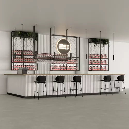 A fresh and contemporary bar concept defined by clean lines, natural warmth, and sculptural textures.
