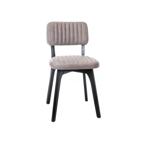 The Hyperion 2S chair is designed for restaurant use, featuring a durable beech wood frame finished with polyurethane lacquer for long-lasting wear resistance. The seat includes high-density foam for comfort, and the upholstery is available in various fabrics or faux leather, with multiple wood stains to match different horeca settings.