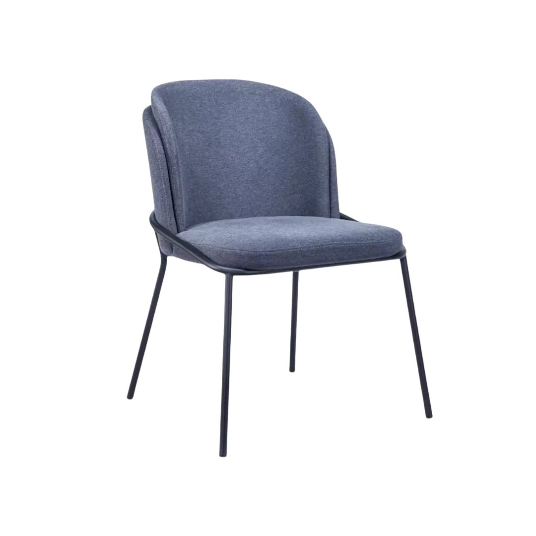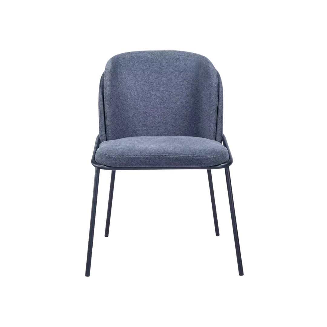 Elevate your dining experience with this modern, fully upholstered metal restaurant chair. Upholstered in luxurious fabric, it offers both comfort and style. The sleek black metal legs provide sturdy support and a contemporary look. Perfect for contemporary dining spaces and cafes, this chair is a blend of elegance and functionality. Its chic design and high-quality construction make it a perfect addition to any modern setting.
