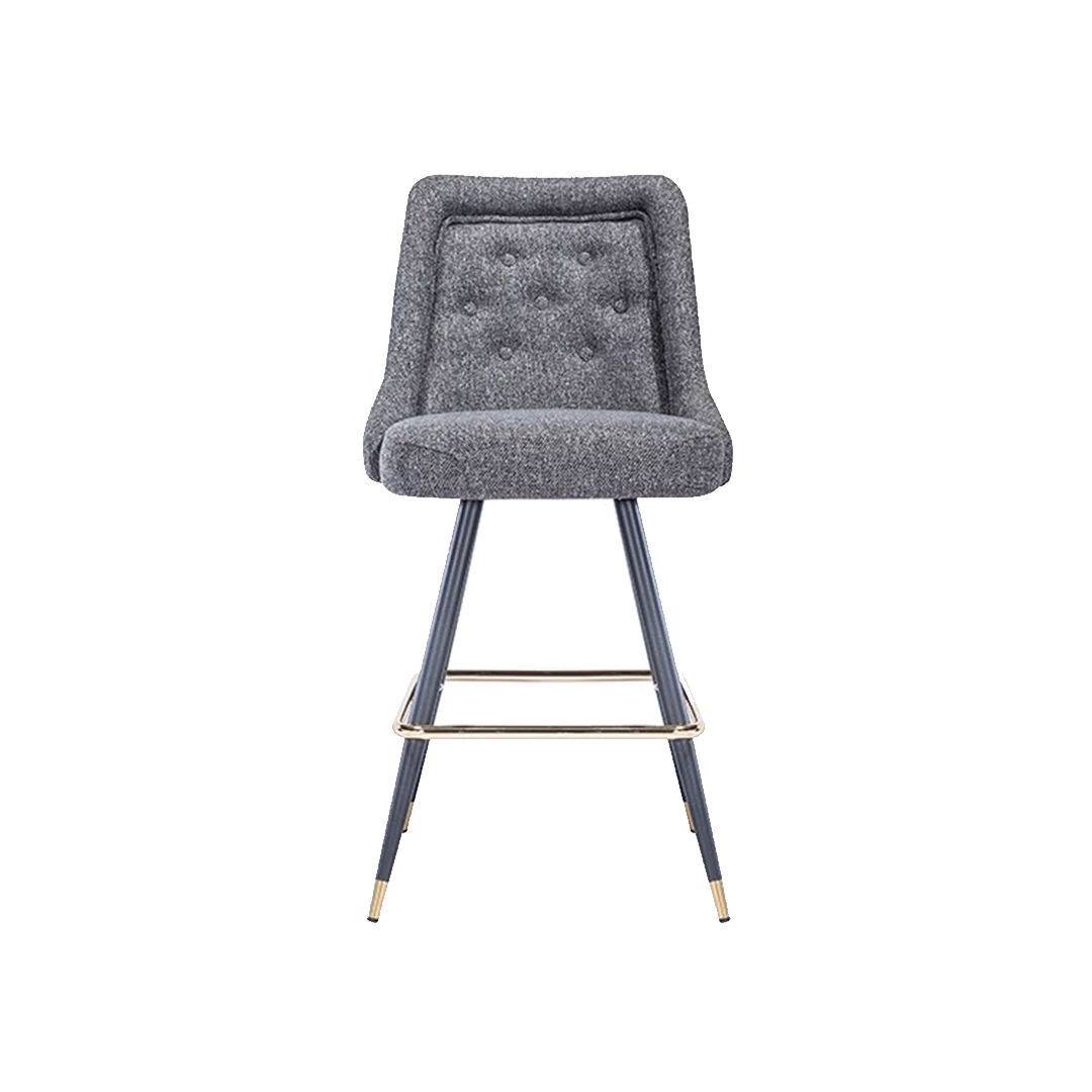 The Jim BK 001 B barstool combines elegance with robust functionality. Its engineered metal frame and footrest ensure durability, while the upholstered seat, available in professional fabrics or faux leather, provides comfort. Decorative buttons on the back add sophistication, making it perfect for bars, hotels, and other horeca venues.