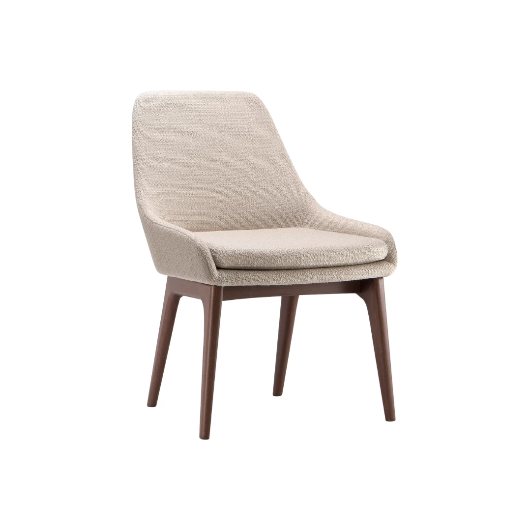 The Jojo S chair is a perfect expression of Italian quality and timeless style. Designed for comfort and elegance, it stands out with its soft curves and sturdy beechwood frame. The seat and backrest can be upholstered in a wide selection of fabrics or leathers, or you can provide your own fabric to achieve a truly bespoke look. The wooden base is available in multiple stain finishes, allowing for full customization. Whether for restaurants, cafes or lounges, Jojo S blends durability with design.