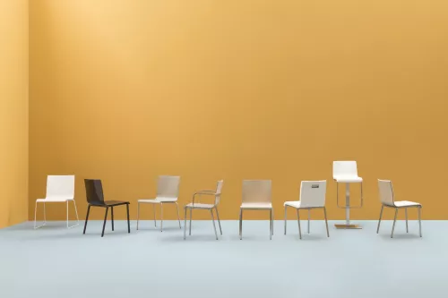 Kuadra XL 2401 stands out with its generous dimensions, low-profile backrest, and wide variety of finishes, offering enhanced comfort and adaptability. Featuring a technopolymer shell produced by injection molding and a 20x20 mm square steel tube frame, this chair blends sleek design with reliable durability. Stackable up to 8 pieces, it’s ideal for modern contract settings.