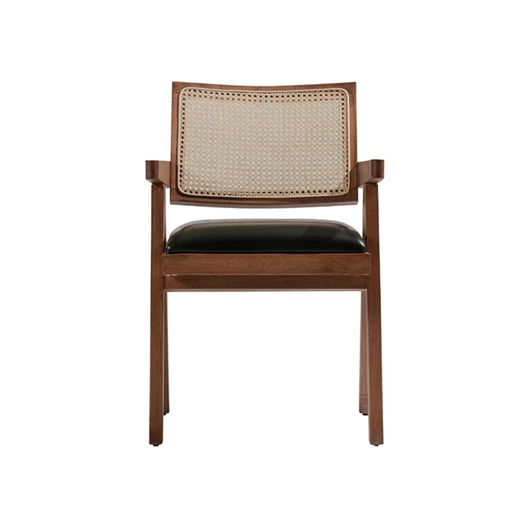 The Lerida chair combines classic charm with modern versatility. Its beech wood frame, available in multiple colors, supports a comfortable upholstered seat and a stylish wickerwork backrest. With upholstery options in professional fabrics or faux leather, Lerida is perfect for restaurants, hotels, and a variety of horeca interiors, adding elegance and durability to any space.