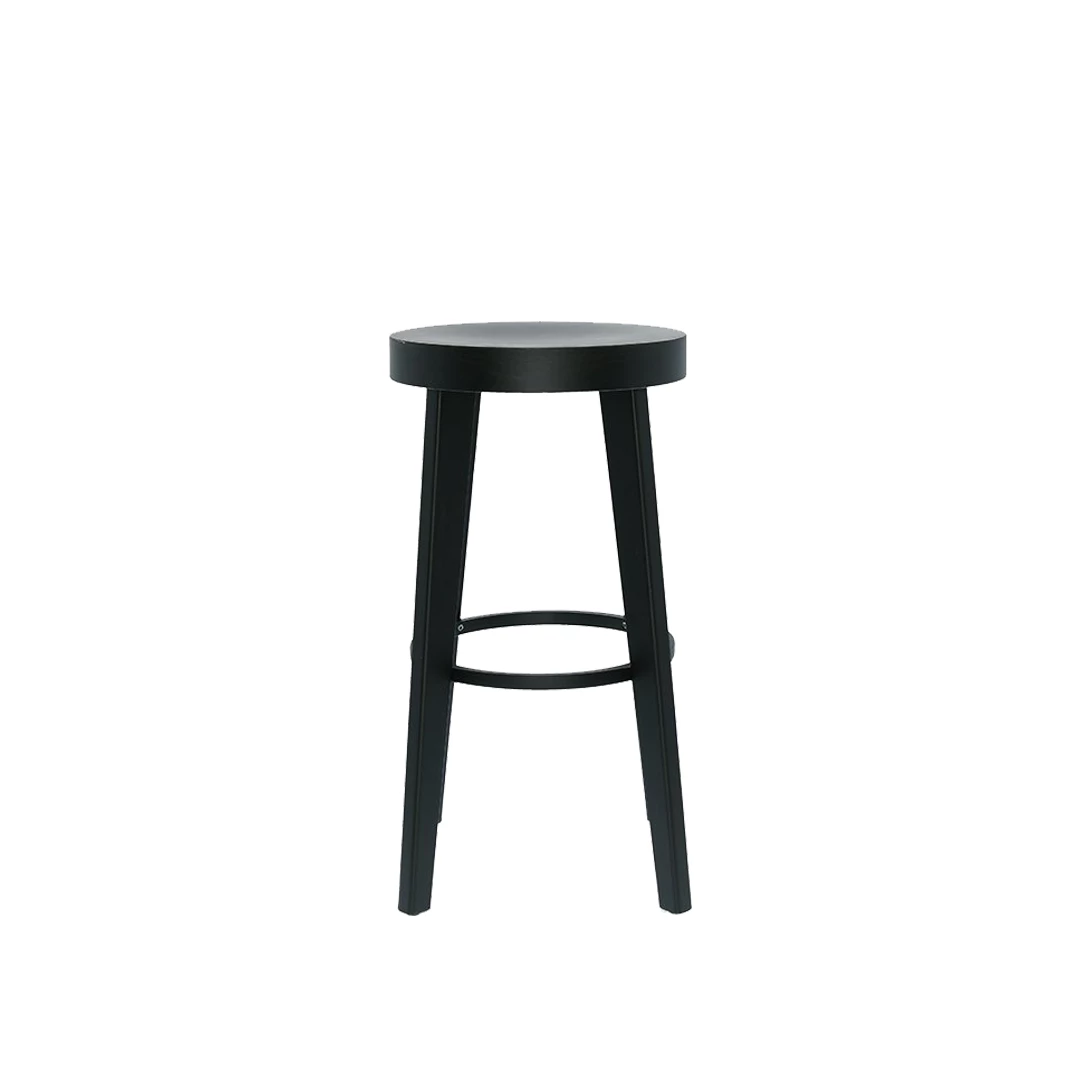 The Lucas BK wooden stool combines timeless design with solid craftsmanship. Built on a durable beech wood frame, it features four straight legs supporting a round seat. Available with either a veneered or upholstered top and in three heights—46, 65, or 75 cm—it fits perfectly in bars, bistros, or any contemporary horeca environment.