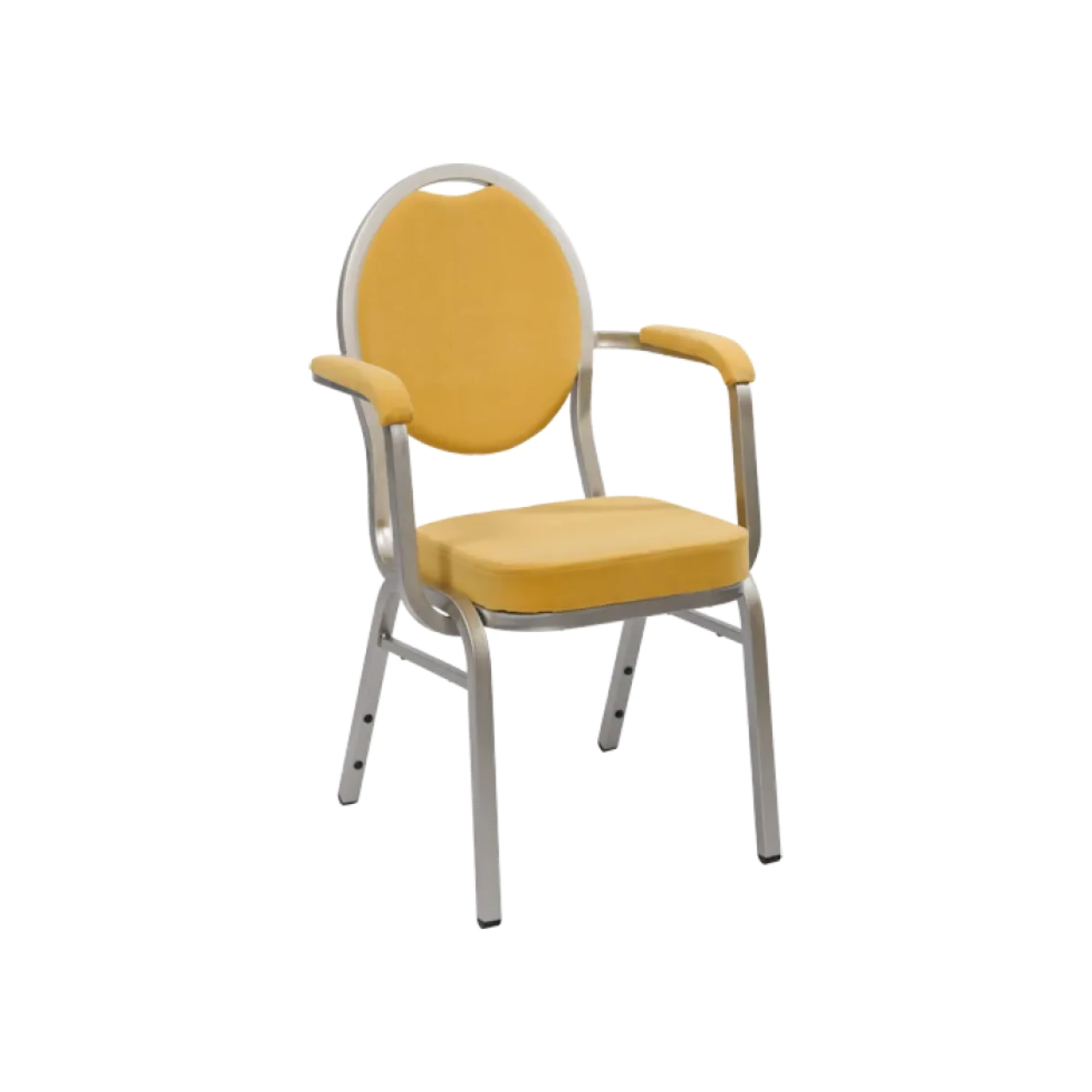 Martha Alu A is a stylish upholstered chair with armrests and a lightweight yet durable aluminium frame. Built for horeca environments such as conference rooms and banquet halls, it offers various color options for both frame and upholstery. With stackability up to 14 pieces, it combines elegant design, space-saving practicality, and versatile integration into diverse interior styles.
