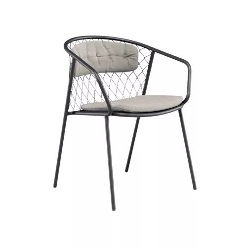 The Nef A chair is the perfect choice for upscale terrace dining in restaurants, cafés, and bistros. Constructed with a durable aluminum frame and featuring stainless steel and synthetic rope, it’s designed to withstand the elements while offering comfort and style. The seat cushion and back cushion provide additional comfort, making it ideal for outdoor settings where guests will be seated for extended periods. With armrests for added relaxation, the Nef A chair is both a functional and stylish addition to any outdoor venue. Its contemporary design makes it versatile for any modern dining environment, while the materials ensure long-lasting performance, even in high-traffic areas. Whether you're outfitting a café terrace or a restaurant's outdoor space, the Nef A offers both elegance and durability.