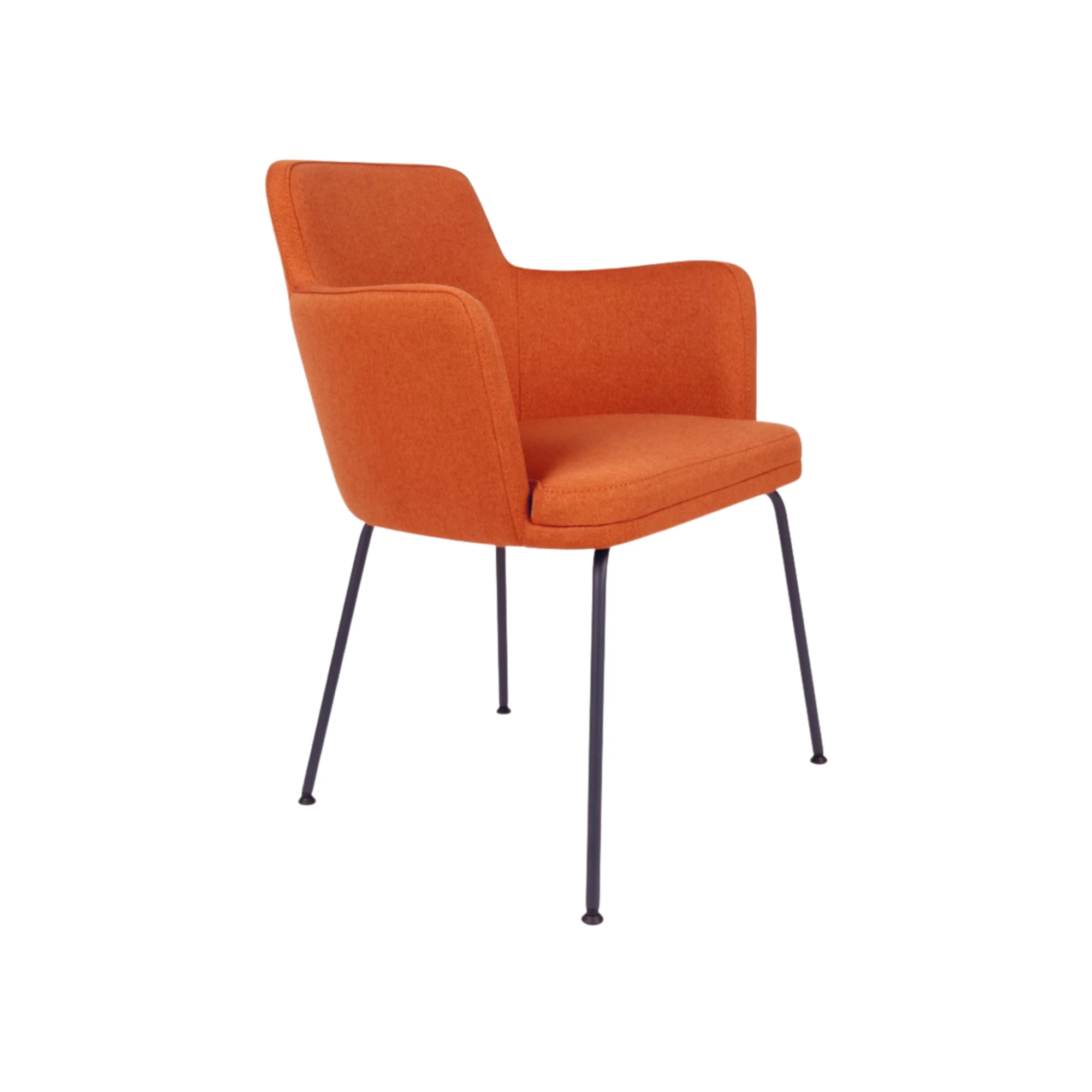 The Nymphaea Metal chair combines sleek modern design with exceptional comfort, featuring a fully upholstered seat and backrest paired with sturdy metal legs. Available in a rich palette of finishes — White, Grey, Black, Olive Green, Dark Blue, Burgundy, and Brown — it adapts effortlessly to any interior restaurant setting. The elegant metal frame provides durability and a contemporary edge, while the built-in armrests enhance comfort for extended seating. Perfectly suited for upscale dining environments, Nymphaea Metal delivers refined style, long-lasting quality, and inviting support for your guests.