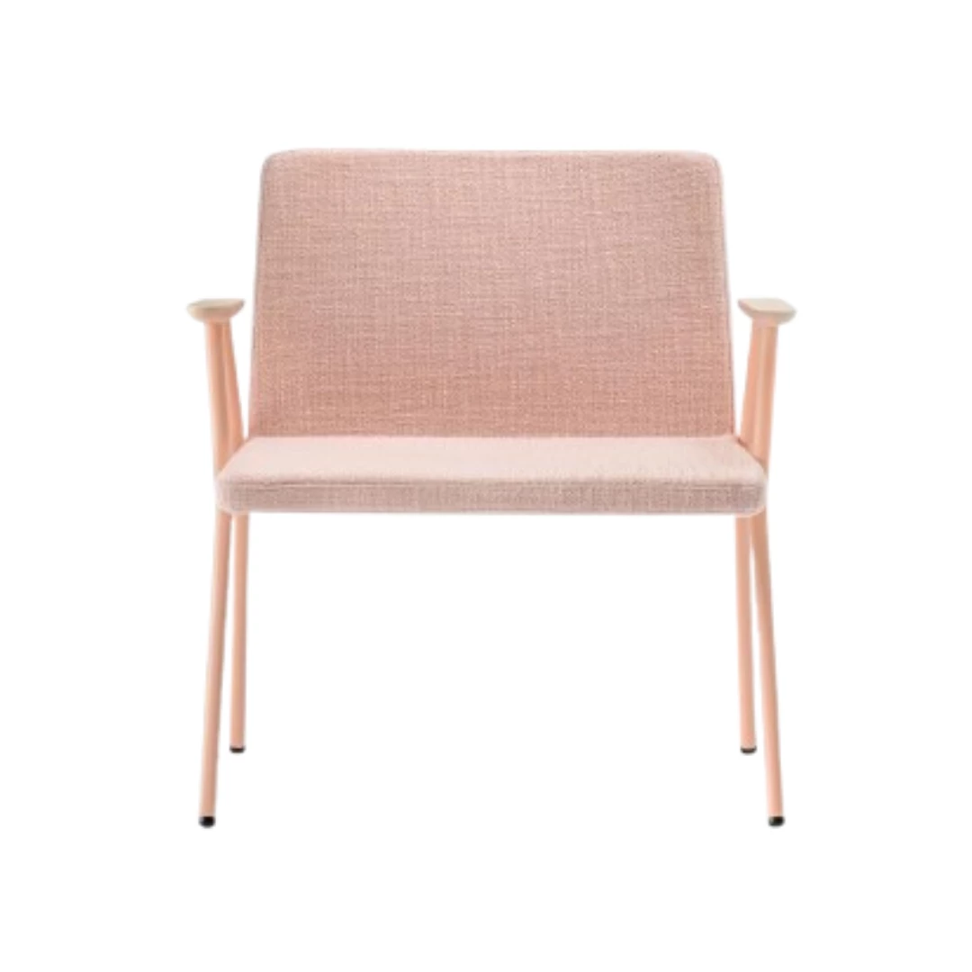Osaka 5729 – a refined lounge chair with a Ø20 mm tubular steel frame, elegant ash armrests, and a padded shell upholstered in fabric, leather, or faux leather. Combining comfort and style, it’s perfect for indoor lounges, creating inviting and sophisticated seating areas.