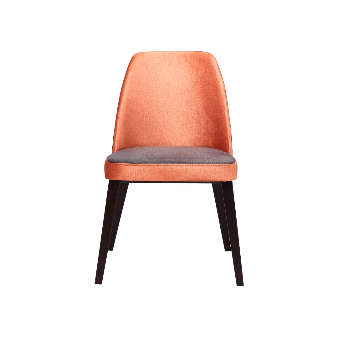 Crafted with a solid beech wood frame, this chair is finished with a durable polyurethane lacquer that provides excellent protection against daily wear and tear. Designed for use in demanding environments such as restaurants, cafés, or hotels, it features high-density foam padding that ensures lasting comfort and resilience even under intensive use. The product also stands out for its high level of customizability—customers can choose from a wide selection of professional-grade fabrics in various textures and colors, making it easy to adapt the chair to a wide range of interior styles and branding needs.
