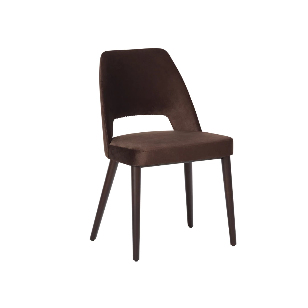 Built on a strong and durable beech wood frame, this chair is finished with a high-quality polyurethane lacquer that offers reliable protection against scratches, moisture, and daily wear. The seat and backrest are padded with high-density foam to provide maximum comfort and long-term performance, even in high-traffic environments. This model can be fully customized, with a wide selection of professional upholstery fabrics available in a variety of textures, colors, and finishes—ideal for matching any décor or branding concept.