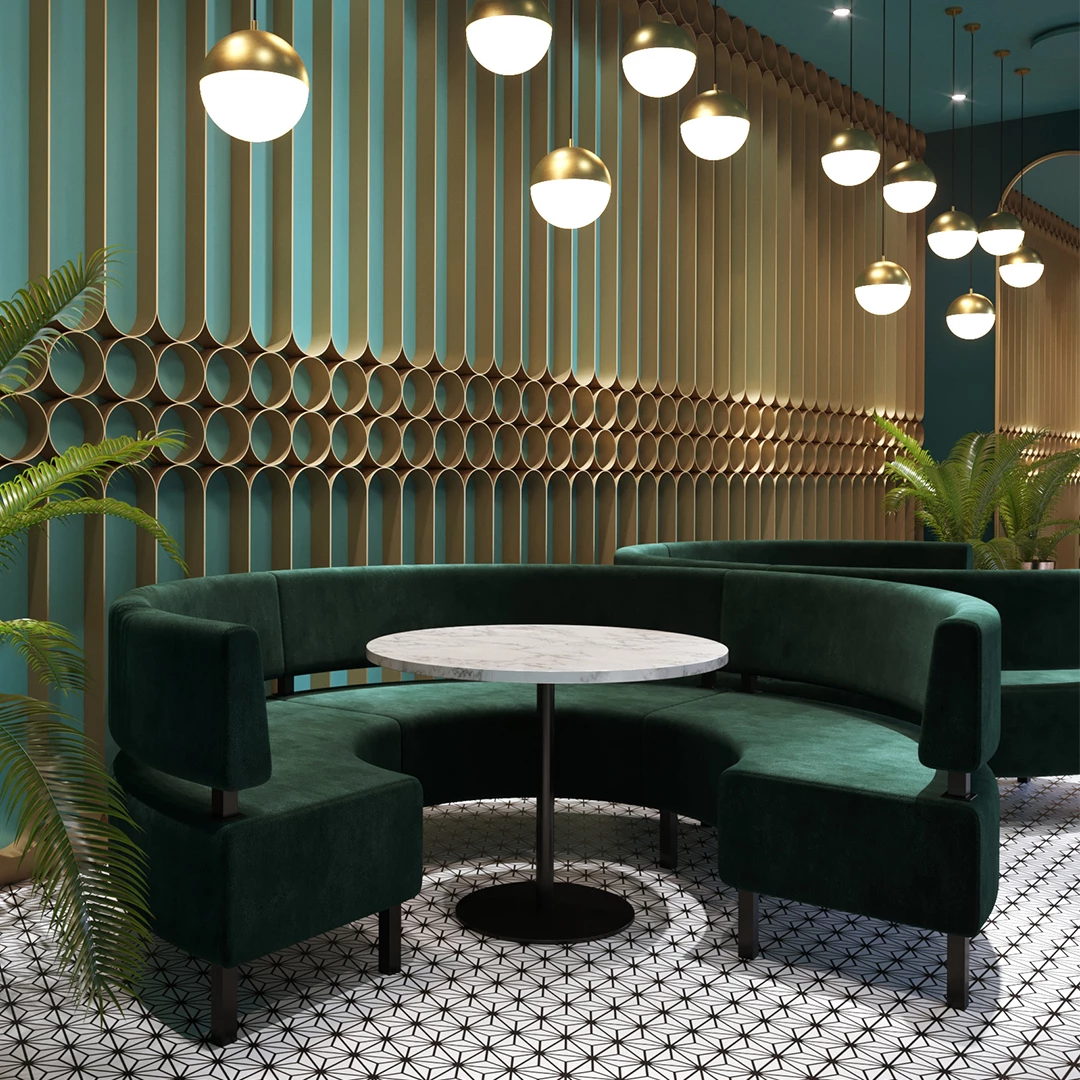 The Rado Semicircular Bench is designed to impress in vibrant restaurant, café, and bistro interiors. With its eye-catching curved design, it effortlessly creates dynamic and elegant seating areas that encourage conversation and elevate the dining experience. Perfect for corner setups, central lounge zones, or wall-aligned layouts, Rado brings flow and sophistication to any hospitality space. Upholstered with premium materials and built on a strong beech wood frame, it offers both durability and comfort. Whether you're furnishing a stylish bistro or a high-end restaurant, the Rado Semicircular Bench adds a refined and inviting atmosphere.