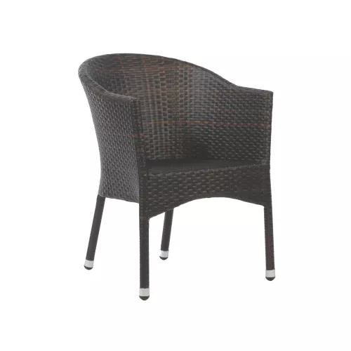 Romance is a refined outdoor chair designed for horeca environments. With a powder-coated aluminum frame and a flat P.E.-Wicker seat and backrest in a warm burned tone, it offers durability and elegance. UV and weather-resistant, stackable, and available in a timeless design, it's perfect for terraces, patios, and any outdoor hospitality setting.