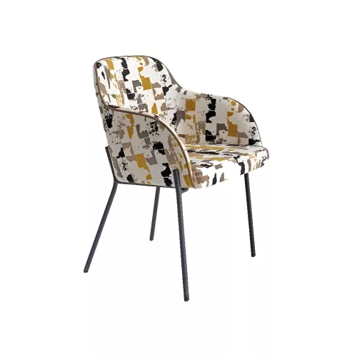 Romie A is a comfortable chair with armrests, designed with a durable powder-coated steel frame available in any RAL color. The seat and backrest are upholstered and can be customized with a wide selection of professional fabrics or faux leather. Ideal for various horeca environments and interior design styles.