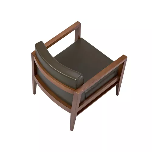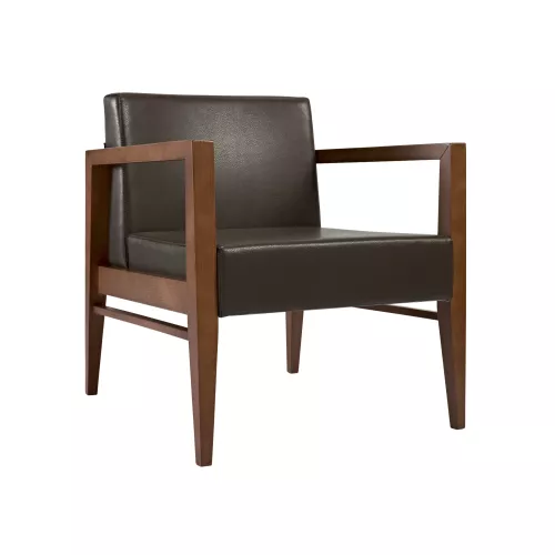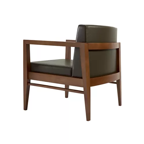 Sorrana is a refined armchair created for high-traffic horeca environments. Built on a durable beech wood frame, it features an upholstered seat and backrest, padded with high-density foam for lasting comfort. Available in a wide selection of professional fabrics or faux leather. Its timeless shape blends seamlessly into lounges, lobbies, and hotel interiors.