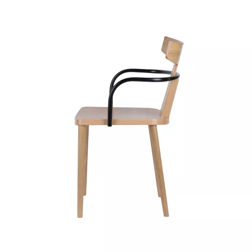 T Armchair is an elegant and durable seating solution, crafted from solid beech wood and designed to bring both comfort and style to restaurants, cafés, bistros, and pubs. Its sturdy armrests enhance user comfort, making it suitable for long stays. The seat is available in veneered or upholstered versions, offering flexibility to match your interior aesthetic. Upholstery can be customized from a wide range of textures and colors, allowing seamless integration into any space, whether modern, rustic, or classic. With its refined design and high-quality construction, T Armchair is built to meet the demands of high-traffic environments without compromising on visual appeal.