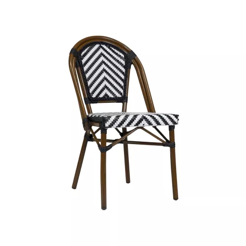 Discover the Tone terrace chair, an ideal seating solution for restaurants, cafés, and bistros. Crafted with a sturdy aluminum frame for lightweight durability, it features an attractive bamboo look that brings natural warmth and elegance to any outdoor or indoor space. Thanks to its UV-resistant construction and flat weaving, Tone is built to withstand sun and weather, ensuring long-lasting beauty. Its stackable design (up to 19 pieces) allows for efficient storage and easy handling, making it perfect for high-traffic hospitality settings. Available in a range of color combinations — Classic Bamboo/Black-White, Light Bamboo/Beige-Blue, Light Bamboo/Beige-Pink, and Light Bamboo/Black-White — Tone offers versatility and style to match any décor. Bring comfort, practicality, and a refined aesthetic to your terrace with Tone.