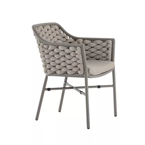 Tosca is a stylish outdoor armchair designed for modern hospitality terraces. Built on a durable Aluminium frame, it is wrapped in textylene and rubber rope for strength and comfort. The chair is stackable and features soft textylene cushions. Multiple versions are available, making it easy to adapt to any outdoor setting in horeca environments.