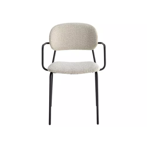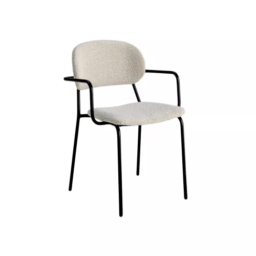 The Valesta A chair combines comfort and strength, making it ideal for diverse horeca environments. Featuring upholstered seat and backrest, it provides long-lasting support while adapting to multiple interior styles. The design includes sturdy metal armrests for added functionality. Available in professional fabrics or faux leather, with a fixed powder-coated frame. Stackable for space-saving storage.
