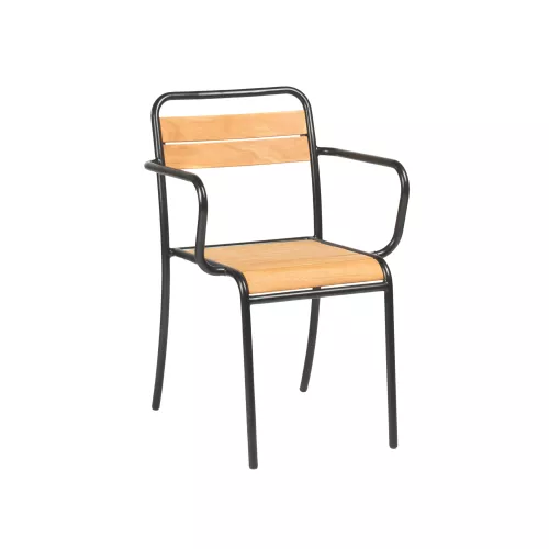 The Yogo A chair is a stylish and durable seating option designed for professional outdoor settings such as restaurants, terraces, and cafés. Built with a strong metal frame and elegant chestnut wood seat and backrest, it combines natural aesthetics with industrial strength. The structure is specially treated for outdoor use, ensuring long-term resistance to weather and heavy daily use. Available in a wide range of RAL colors, Yogo A allows customization to match any brand identity or design concept. With its refined appearance and robust construction, it is the ideal choice for businesses looking to enhance their outdoor seating area with quality and style.