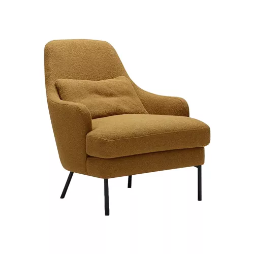 Alisson is an elegant upholstered armchair that blends beauty and balanced design in perfect harmony. Its high, minimalistic metal legs give the fully upholstered seat, back, and armrests a light, hovering appearance. Enhanced with an extra lumbar cushion, it offers inviting comfort for lounges, lobbies, waiting areas, offices, and other horeca spaces. Available in a wide range of professional fabrics.