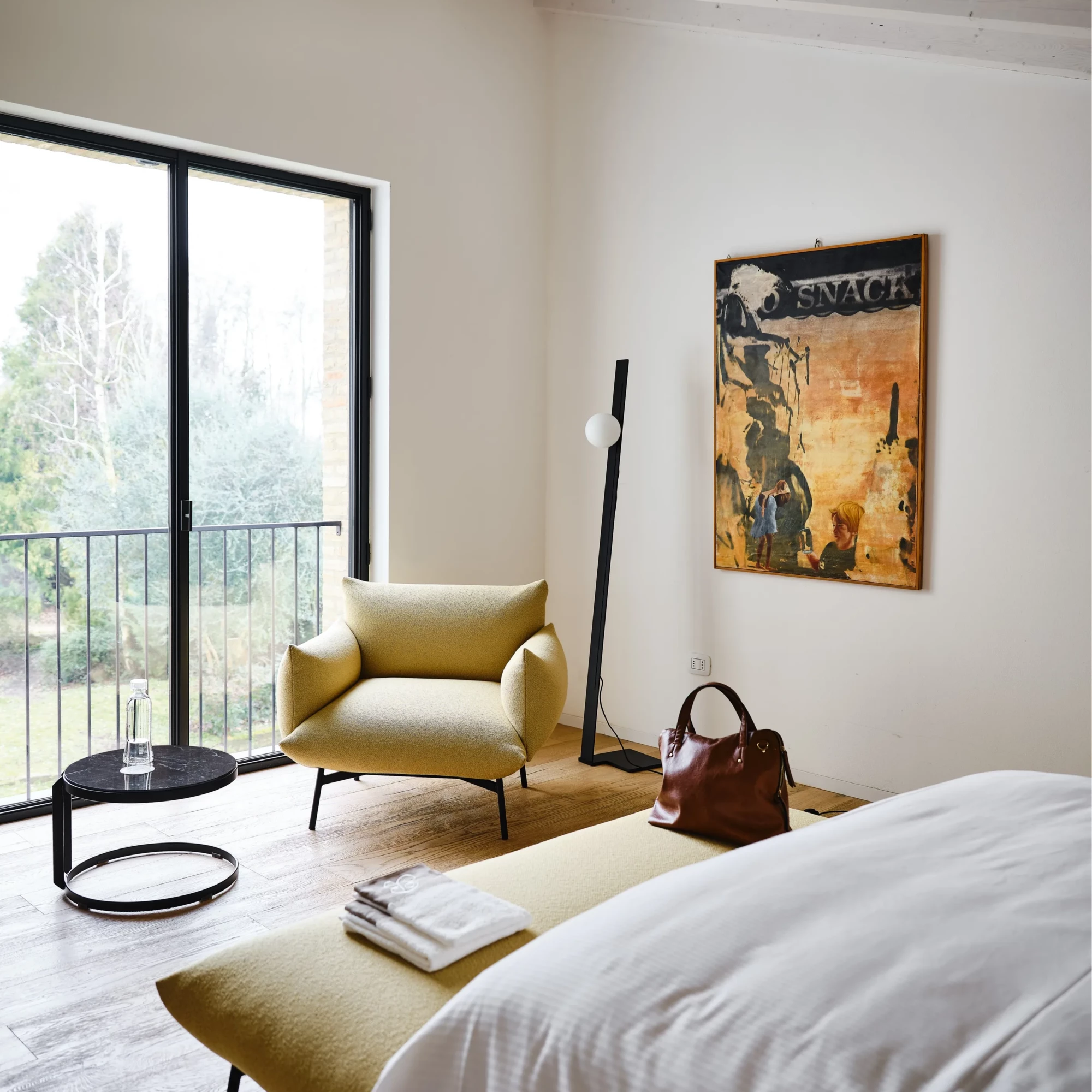 Area Armchair P_BR M TS is a fully upholstered armchair designed for horeca interiors. It features a cushioned seat, backrest and armrests, all supported by a sturdy lacquered steel frame available in multiple colors. Its elegant comfort and professional-grade upholstery make it ideal for lounges, waiting areas, and modern hospitality settings.