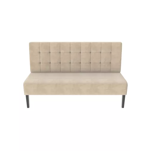 Avina Bench is a custom-made dining bench that blends comfort with style. Featuring elegant capitons on the backrest and sturdy beechwood legs in multiple finishes, it can be tailored with professional fabrics or faux leather. Ideal for restaurants, cafes, and other horeca spaces seeking a refined, versatile seating solution.