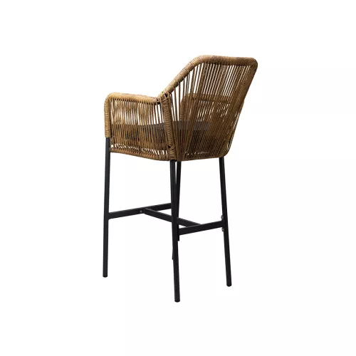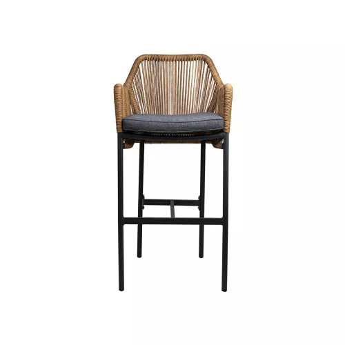 The Baleric terrace bar chair is specially designed for style and endurance in demanding Horeca environments. Featuring a sturdy anthracite Aluminium frame and UV-resistant rope wicker on the back- and armrests, it blends durability with a modern aesthetic. Ideal for outdoor hospitality spaces, its refined look suits hotels, restaurants, and cafés alike. Available in brown, green, blue, and grey, the Baleric offers vibrant customization options. It includes a comfortable cushion and is ergonomically shaped for extended seating comfort. A matching terrace chair is also available, making it the perfect solution for cohesive Horeca terrace setups.